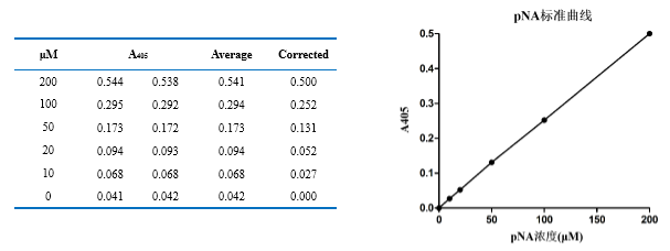 本产品基于Caspase 9催化底物Ac-LEHD-pNA产生黄色的pNA (p-nitroaniline),测定pNA在405 nm吸光度的原理,检测Caspase 9的活性。试剂盒提供的pNA可作为定量Caspase 9活性的标准品。当使用酶标仪检测或容量不超过100 μl的分光光度检测杯检测时,除标准曲线外可以检测20个样品(20T)或100个样品(100T)。