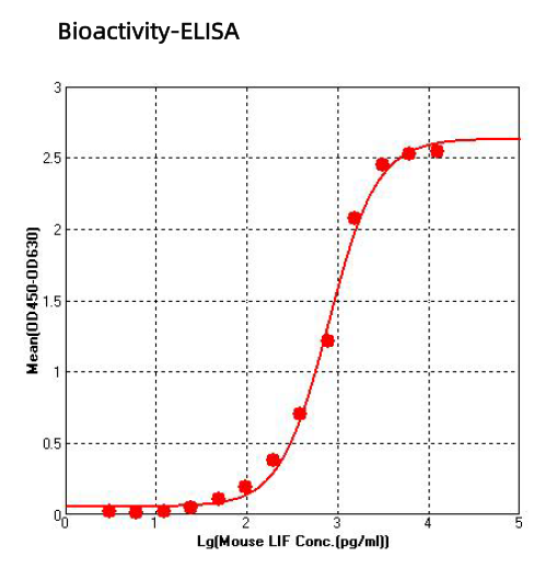 Immobilized Anti-Mouse LIF Antibody at 0.2 ug/mL (50 uL/well) can bind Mouse LIF with a linear range of 48.83 - 6,250 pg/mL. |
