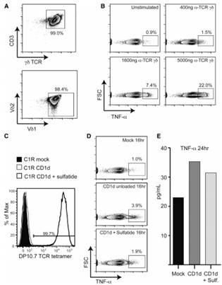 研究认为γδT细胞通过识别CD1d递呈的脂类抗原而被活化,芝加哥大学的科研人员通过蛋白结晶解析深入研究了这一复杂的蛋白复合结构,明确了"γδTCR-CD1d-硫脂抗原"的空间构象,并证实这一过程在人Vγ1肠道克隆中普遍存在。Luoma AM, Castro CD, Mayassi T, et al. Crystal Structure of Vδ1 T CellReceptor in Complex with CD1d-Sulfatide Shows MHC-like Recognitionof a Self-Lipid by Human γδ T Cells. Immunity. 2013, 39(6):1032-42.