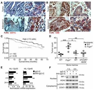 新生Fc受体FcRn之前被证实在肠道粘膜免疫中发挥重要作用,而哈佛科研人员一项研究证实,肠道DC细胞表达的FcRn在免疫系统抵御结直肠癌发生过程中亦发挥重要作用,FcRn+CD11c+ DCs细胞亚群是结直肠癌患者预后良好的有效标志。