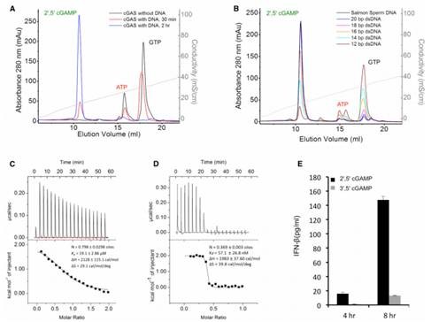 环-GMP-AMP合成酶(cGAS)作为一种胞质内DNA感应分子,在抗病毒(如HIV)免疫中发挥作用。美国科研人员最近深入研究了cGAS的活化机制,发现cGAS能通过两个结合位点与胞内病原DNA集合,从而被双链DNA诱导的寡聚反应所活化并激活免疫反应。Li X, Shu C, Yi G, et al. Cyclic GMP-AMP Synthase Is Activated by Double-Stranded DNA-Induced Oligomerization. Immunity. 2013, 39(6):1019-31.