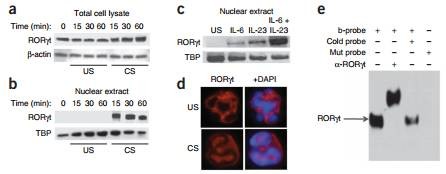 美国科研人员最近在人和小鼠骨髓中发现一群新的中性粒细胞,其特征是组成型表达RORγt ,并受其自分泌IL-17A的调控。研究发现多种分子包括IL-6、IL-23、RORγt和dectin-2共同调控该群细胞的活化,并在真菌感染时发挥免疫功能。Taylor PR, Roy S, Leal SM Jr, et al. Activation of neutrophils by autocrine IL-17A–IL-17RC interactions during fungal infection is regulated by IL-6, IL-23, RORγt and dectin-2. Nat Immunol. 2014, 15(2):143-51.