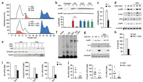高密度脂蛋白(HDL)能有效逆转胆固醇转运,从而缓解和预防动脉粥样硬化。亦有研究证实HDL具有一定的抗炎症作用。德国波恩大学一项研究发现,HDL能通过转录因子ATF3抑制巨噬细胞TLR信号的传导,从而有效抑制巨噬细胞相关炎症。De Nardo D, Labzin LI, Kono H, et al. High-density lipoprotein mediates anti-inflammatory reprogramming of macrophages via the transcriptional regulator ATF3. Nat Immunol. 2014, 15(2):152-60.