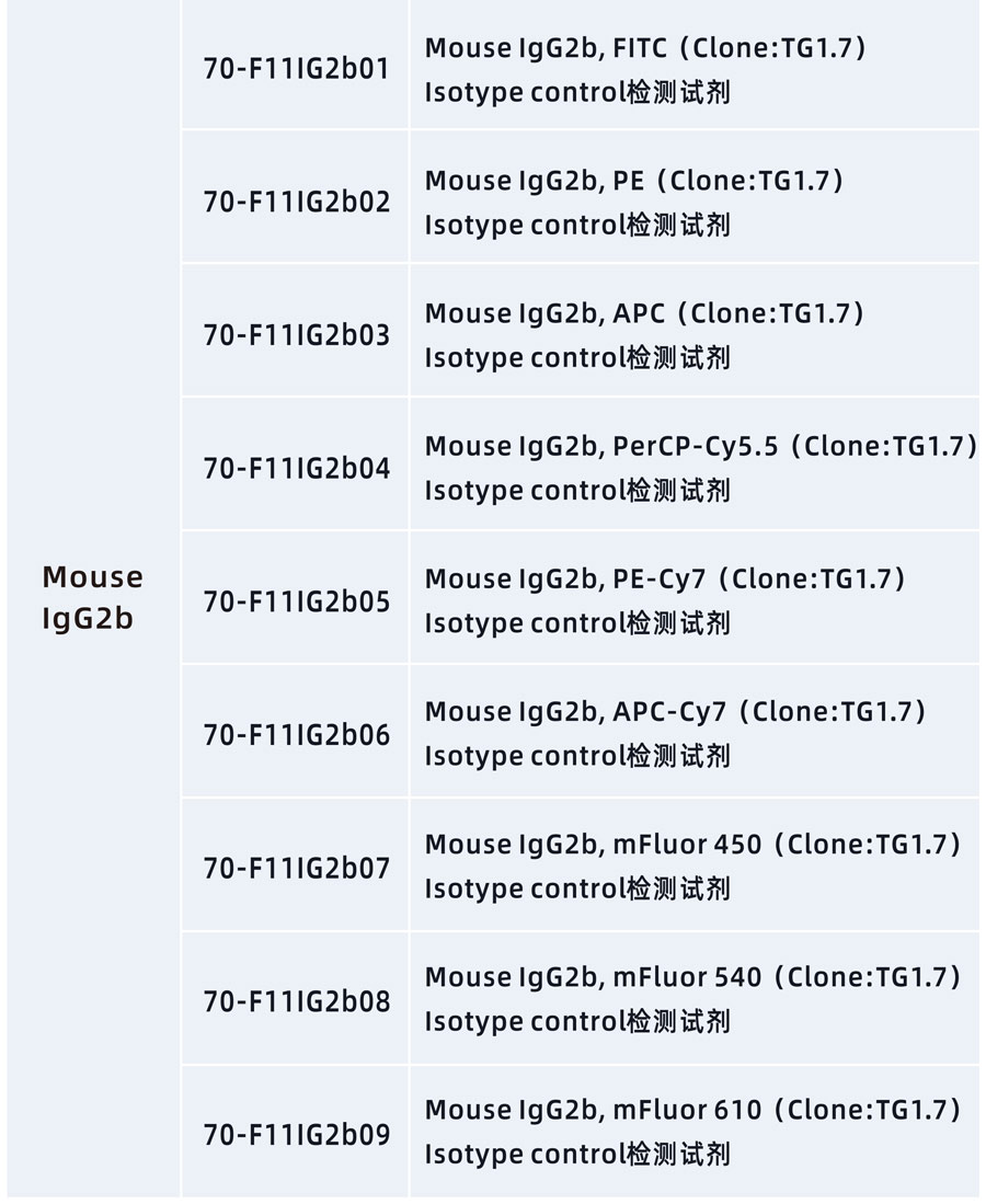 赠送产品: 同型对照抗体(指标为Mouse IgG1 k,Mouse IgG2a,Mouse IgG2b,详细信息见附表)