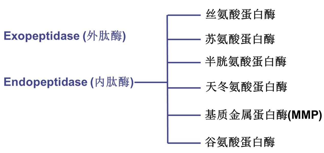 | 蛋白酶类蛋白蛋白酶(亦称为蛋白水解酶或肽酶) 是指能水解蛋白或多肽中肽键的酶。 大多数蛋白酶的作用方式特异,水解通常发生在底物蛋白或多肽的特定氨基酸残基、序列或其附近的肽键处。 蛋白酶在许多疾病和生物学过程中均发挥着重要的作用,如胎儿和生后发育、繁殖、信号转导、免疫应答、多种自身免疫和退行性疾病,以及癌症等。蛋白酶也是重要的研究工具, 常用于蛋白的分析和制备。