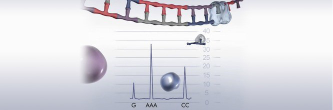 dNTP的添加反应在持续进行着。应注意脱氧腺苷三磷酸α-硫代三磷酸(dATPαS)能够作者为天然脱氧腺苷三磷酸(dATP)的替代物,被DNA聚合酶有效利用,却并不会被荧光素酶所识别。当反应进行时,逐渐合成了互补的DNA链,其核苷酸序列能够凭借热解图(Pyrogram)轨迹中的信号峰值来确定。