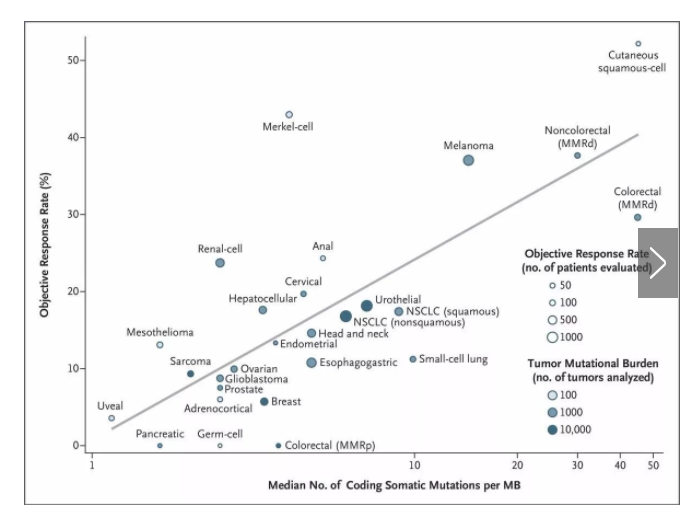 分析表明55%的肿瘤类型的客观反应率的差异可以用肿瘤突变负荷来解释。