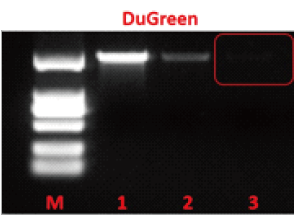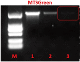 | 图注:MTSGreen 灵敏度和DuGreen相当DNA质量 1:50ng 2:5ng 3:2.5ng |