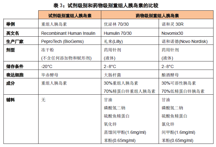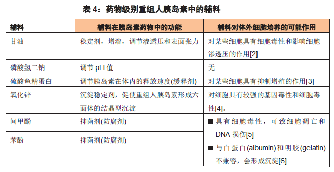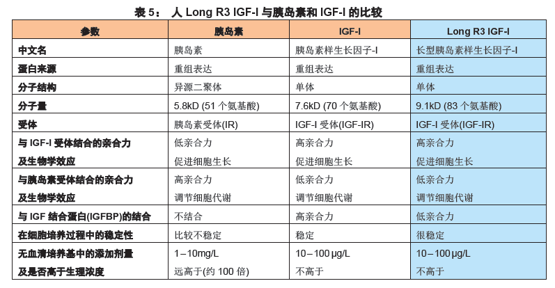 需要注意的是,胰岛素对细胞的代谢调节作用主要是通过其与细胞膜上的胰岛素受体(Insulin receptor, IR)相互作用而介导,而胰岛素对细胞的促生长作用则是通过其与细胞膜上胰岛素样生长因子(Insulin-like growth factors, IGFs)的受体,即IGF Receptor (IGFR)相互作用而介导的。 3. 无血清培养基中应该添加提取的胰岛素,还是重组的胰岛素? 人胰岛素的来源有限,无法满足临床和科研的需求,因此人们通常从牛或猪的胰脏中提取获得胰岛素。 胰岛素种属间高度保守,猪和牛的胰岛素与人的胰岛素氨基酸序列上分别仅有1个和3个氨基酸的差异,所以猪和牛的胰岛素完全可以替代人的胰岛素来进行科学实验和临床治疗。 然而,毕竟猪和牛的胰岛素属异种蛋白,进入人体后容易产生抗体,影响治疗效果,并引起副反应。所以,目前临床上广泛应用的是重组人胰岛素,即使用基因工程手段,将人的胰岛素基因转移到细菌或者酵母细胞中,然后利用发酵工艺,进行大规模的生产,从而得到大量、高纯度的人胰岛素。 从表2 可以看出,提取的胰岛素可能含有其它激素等杂质,并可能因其异源性而导致在人体内产生抗体。所以,在配制无血清培养基时最好使用重组的人胰岛素,这样: 1) 如果此无血清培养基用于科学研究,不会因含有胰岛素以外的激素而引起与预期结果不符的反应; 2) 如果此无血清培养基用于细胞治疗,因无异源性,细胞体外培养后回输到人体时不会产生抗体,也就不会影响治疗的效果。 4. 无血清培养基中应该添加试剂级别的重组人胰岛素,还是药物级别的重组人胰岛素? 因为胰岛素具有治疗糖尿病的重要功效,所以多年前就已被制备成药品,以供糖尿病患者的使用。 药品确实具有制备严格(多数遵循GMP 标准生产),副作用和安全风险小等优点,因此许多无血清培养基生产厂家倾向于使用药物级别的胰岛素。然而,仍有不少厂家在使用试剂级别的重组人胰岛素来生产无血清培养基。 那么,无血清培养基究竟是该用试剂级别的重组人胰岛素,还是药物级别的重组人胰岛素呢? 药品与试剂不同,药品有不同的剂型,如片剂、针剂、胶囊剂和栓剂等十多种。即使对于同一种剂型,其中还可分为若干亚型,如针剂包括注射水针剂、注射油针剂、中草药注射剂,以及注射用灭菌粉末等。而且药品通常保存于室温或2 - 8°C。这就要求药品在制备过程中除了包含药物本身(通常称为主药)外,还必须加入一些有助于制剂成型(如赋形剂)、稳定(如抑菌剂)、增溶和助溶等具有不同作用的辅料,也就是说药品中含有很多非药品成分。将药品添加入无血清培养基中进行细胞培养时,不可避免地会引入诸多不确定的因素,一方面可能会对细胞的生长或分化产生影响,另一方面可能会带来非预期的实验结果。而药物辅料对培养细胞的作用又很难通过设立辅料对照来确定,因为辅料的成分过于复杂,且通常药厂并不公开辅料的具体组分。 下面我们以药物级别的重组人胰岛素为例来看一下辅料对体外细胞培养的可能影响。 从上表可以看出,胰岛素药物中的辅料均具有一定的负面生物学功能,这些功能在药物用于人体内治疗时不会显现,因为人体具有肝脏等解毒器官,低浓度的有害物质短期内不会对人体的组织产生影响。但当药物用于体外细胞培养时,因为药物中的辅料会直接、完全地作用于细胞,这些辅料的副作用更容易显现出来。虽然当药物加入细胞培养体系时,辅料的浓度可能已经降得很低,但不排除这些辅料或多或少仍会对细胞的生长或分化产生某些影响。 另外,无血清培养基体系中所必须添加的组分-白蛋白(albumin) 与胰岛素药物中的辅料-苯酚和间甲酚会形成沉淀,从而在一定程度上影响白蛋白的功能。其实,已经证实苯酚的衍生物- 酚红(phenol red) 有干扰某些细胞的克隆性生长的作用,所以用于培养干细胞或生长密度比较低的细胞的无血清培养基中通常不添加酚红,尽管培养基中因此会缺少酸碱指示剂。 综上所述,配制用于体外细胞培养的无血清培养基最好使用不含任何辅料的试剂级别胰岛素,以避免辅料可能给细胞带来的危害以及实验结果不确定性的增加。 5. 胰岛素在无血清培养基中的使用浓度 所培养的细胞不同,无血清培养基中所需的胰岛素量也有所区别,一般在1-10mg/L之间。 药物级别的胰岛素一般以IU(International Units),即国际单位来表示其中胰岛素的含量。如果原来在无血清培养基中添加的是药物级别的胰岛素,现在想转换成试剂级别的胰岛素,么应该在每L 培养基中加入多少mg 的胰岛素呢? 药物胰岛素的一个IU 相当于6nmol,即0.035mg 的胰岛素。以礼来公司的优泌林70/30(Humulin 70/30) 400U/10mL 胰岛素为例,如果在配制某种无血清培养基时,每L 加入10U,那么转换为使用试剂级别的胰岛素时,则每L 需加入:10 x 0.035mg = 0.35mg 的试剂级别胰岛素。 IGF-I 是IGFs 的一种。IGFs 的英文全称是Insulin-like growth factors,即胰岛素样生长因子,因其可模拟胰岛素对细胞的全部生物学效应而得名。 IGFs 与胰岛素在功能上基本相同,但胰岛素主要作用于细胞的代谢,而IGFs 主要作用于细胞的生长。 IGFs 包括IGF-I 和IGF-II 两种低分子量多肽,分别由70 和67个氨基酸组成,两者氨基酸的一致性为62%,与胰岛素有约50%的氨基酸是一致的。 在无血清培养基的配制中,常用IGF-I 来替代胰岛素,原因是IGF-I 在很低的浓度即可实现或超过远远高于生理浓度的胰