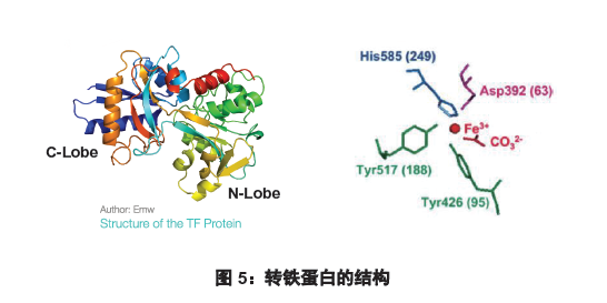 与胰岛素的受体相似,IGF-I 的受体也存在于大多数细胞的细胞膜上,因此多数情况下,同一细胞上会既存在胰岛素的受体,又存在IGF-I 的受体。更需注意的是,胰岛素和IGF-I 除可与各自的相应特异性受体, IR和IGF-IR结合并介导相应的生物学效应(分别为代谢调节和促生长作用),也可与对方的受体结合,即胰岛素可以与IGF-IR结合,介导促细胞生长和增殖作用,而IGF-I 也可与IR 结合,介导对细胞代谢的调节作用,只是与相应特异性受体结合的亲合力很高,而与对方受体结合的亲合力很弱,也就导致胰岛素和IGF-I 通过特异性受体产生的生物学效应较强,而通过对方受体产生的生物学效应较弱。总结如下: a. 胰岛素的主要作用是调节细胞的代谢,虽然也具有促进细胞生长作用,但较弱,这也正是在无血清培养基中需要添加远高于生理浓度的胰岛素(高于生理浓度100 倍之多,浓度一般为1 - 10mg/L)才能维持细胞生长的原因。 b. IGF-I 的主要作用是促进细胞生长,也具有调节细胞代谢的作用,但较弱。因此,很低浓度的IGF-I(10 -100μg/L) 即可维持无血清培养液中细胞的生长。 此外,有些细胞,如CHO(中国仓鼠卵巢细胞)等细胞上,IR 的数量很少,而IGF-IR的数量较多(表6),因胰岛素是通过与IGF-IR 结合来发挥促细胞生长作用的,所以如果无血清培养基中添加的是胰岛素,即使所用的胰岛素浓度再高,因其与IGF-IR受体的亲合力较弱,仍无法达到与IGF-I 等同的促细胞生长效应。此时的最佳策略是直接在无血清培养基中添加IGF-I ,这样细胞的生长会得到非常好的维持,而且IGF-I 的使用浓度也很低。 Long R3 IGF-I 是在全长IGF-I 的基础上重组表达而得的,因此与IGF-I 受体的特异性结合能力不比IGF-I 差,产生的生物学效应也相同。对于某些细胞,在无血清培养基中添加Long R3 IGF-I 的剂量即使仅为胰岛素的1/200,也可实现远好于胰岛素的促进细胞生长和增殖作用。 2) 细胞密度更高,细胞活力更好 工业级别细胞培养一般是在生物反应器中进行的,其中,应激(stress)诱导的凋亡是细胞丧失活力的主要原因。Long R3 IGF-I 通过活化IGF-IR 受体可引起多个信号转导通路的激活,这对细胞的存活和增殖至关重要。与胰岛素相比,Long R3 IGF-I 对IGF-IR 的活化能力更强,其激活某些关键抗凋亡和增殖信号分子(如Akt 和MAPK 等) 的能力也更强。这些信号分子的激活可防止因培养条件和环境的变化而引起的细胞活力丧失。 因此,与胰岛素相比,添加Long R3 IGF-I 的无血清细胞培养基所培养出的细胞密度更高,活细胞数更多。 3) 提高重组蛋白或抗体的产量 从第1)和第2)点可以看出,用Long R3 IGF-I 培养的细胞增殖能力强,活细胞数目多,所以用添加Long R3 IGF-I 的无血清细胞培养基培养表达重组蛋白或抗体的细胞时,通常会比用添加胰岛素的无血清细胞培养基培养获得更高产量的重组蛋白或抗体。 也就是说,如果目的是生产重组蛋白或抗体,最好用添加Long R3 IGF-I 的无血清细胞培养基来优化一下生产流程,有可能会使生产效率得以明显提高。 4) 培养液中半衰期更长,生物活性更长效 细胞在培养过程中会内化培养液中所添加的生长因子,同时也会分泌一些酶到培养基中,引起生长因子的降解。与胰岛素相比,Long R3 IGF-I 更加稳定,被细胞内化和酶降解的速度较慢,因此其在培养体系中的半衰期更长,生物学活性发挥更持久,细胞的培养效果也更好。 在正常的细胞培养条件下,Long R3 IGF-I 比胰岛素的有效作用时间最长可延长2倍之多,因此Long R3 IGF-I 又可称为长效IGF-I。 5. Long R3 IGF-I优于IGF-I Long R3 IGF-I 是以IGF-I 为基础改造而来,即IGF-I 的氨基酸序列中第3 位谷氨酸(G)被精氨酸(R)所取代,而且在氨基末端加了一个13 个氨基酸的延长肽。改造后,Long R3IGF-I 仍具有高亲合力结合IGF-IR 的能力,因此保持着与IGF-I 相似的促细胞增殖活性。同时,改造给Long R3 IGF-I 带来一个非常显著的优点,即与IGF 结合蛋白(IGF Binding Proteins, IGFBPs)的亲合力明显下降。 所有哺乳动物细胞均会分泌IGFBPs,后者可结合并抑制IGF-I 的活性,而改造后的Long R3 IGF-I 与IGFBPs 的亲合力比其原型分子IGF-I 下降1000 多倍,因此其活性可极大程度地避免被IGFBPs 所抑制,从而使得Long R3 IGF-I 在培养体系中的生物可利用度和活性较IGF-I 大为提高。 综上所述,Long R3 IGF-I 是IGF-I 的升级版本,具有诸多重要的优点,原来添加胰岛素或IGF-I 的无血清培养基可尝试使用Long R3 IGF-I,或许会获得更好、更稳定的细胞培养效果。 转铁蛋白的英文名为Transferrin,简称TF,是血浆中主要的含铁蛋白质,负责运载由消化管吸收的铁和由红细胞降解释放的铁。以三价铁复合物的形式进入骨髓中,供成熟红细胞的生成。 转铁蛋白是机体不可或缺的蛋白,其不仅参与铁的运输与代谢,从而调节铁离子平衡和能量平衡,还参与呼吸、细胞增殖和免疫系统的调节,更具有抗菌杀菌的保护功能。 转铁蛋白主要存在于血浆中,在网状细胞、胎盘、粘膜、卵巢、睾丸和中枢神经系统中也有存在。血浆中的转铁蛋白供应机体绝大部分组织的铁,而在其不能到达的部位,如卵巢、睾丸和中枢神经系统等,则由这些组织自己合成的转铁蛋白在局部产生转铁作用。 转铁蛋白于1945年首先在人血清中发现,后在猪等哺乳动物以及鱼类、两栖类和爬行类的血清中也有发现。虽然不同种属的转铁蛋白间差别较大,但其氨基酸序列上有很强的保守性。 人类转铁蛋白由两个结构相似的分别位于N