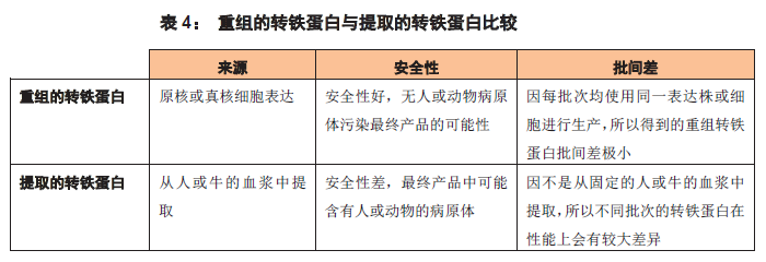 2. 转铁蛋白在无血清培养基中的作用? 牛血清中含有牛种属的转铁蛋白,由于转铁蛋白的保守性,牛转铁蛋白可对人和动物细胞起到很好地保护和支持作用,因此培养基中通常要加入牛血清从而组成完全培养基。无血清培养基为达到与含血清培养基相同或相似的细胞培养性能,其中也必须添加转铁蛋白,以实现对细胞铁离子平衡的调节,以及对细胞生长和增殖的维持。 转铁蛋白在无血清培养基中具有非常重要的作用,具体包括: 1) 避免细胞外环境中自由基的产生,防止细胞受到伤害 我们知道,自由基对细胞膜、蛋白质和DNA 均有较大的损伤作用。如果细胞培养基中出现过多的自由基,被培养的细胞则容易受到伤害,而铁正是形成自由基的罪魁祸首之一。 Fe2+ + H2O2 Fe3+ + OH- + •OH 从上面的反应式可以看出,Fe2+能使过氧化氢(H2O2)还原生成羟基自由基(•OH),而羟基自由基是最为活跃和作用最强的氧自由基,对细胞的伤害很大。 转铁蛋白可以与铁离子高亲合力结合,当被添加入无血清培养基后,在细胞外的培养环境中基本不会存在游离的铁离子,也就不会发生自由基反应,故可避免自由基对细胞的损伤。 2) 维持细胞的生长和增殖 我们对转铁蛋白的转铁作用都很了解,但其实转铁蛋白更重要的意义在于维持细胞的生长和增殖,也就是说,转铁蛋白有类似于生长因子的功能。 那么转铁蛋白是如何发挥维持细胞生长和增殖的作用呢?其实这还是与其转铁功能密切相关。 我们知道,细胞内有很多重要的蛋白(见表7)需要结合铁离子后才能发挥其活性,这些蛋白基本上都与DNA 的复制和修复,以及DNA 的稳定性有关,也就是说它们影响着细胞的生长和增殖。 转铁蛋白通过与其在细胞表面的受体结合,将铁离子转运并释放到细胞内后,这些铁离子会与上述需铁蛋白结合,然后发挥后者维持细胞生长和增殖的功能。如果无血清培养基中不含转铁蛋白,细胞内的需铁蛋白将无法获得铁离子,因而会失去活性,导致细胞生长停滞或死亡。 3) 维持细胞内的铁平衡 转铁蛋白的这个功能也很重要。对于细胞而言,并不是铁越多越好,而应当是在适当的时间获得适量的铁。如果细胞内的铁过多,也跟细胞外环境一样,铁会诱导产生破坏力极强的羟基自由基。而如果细胞内铁过少,则不足以维持细胞的生长和增殖。 那么转铁蛋白是如何调节细胞内的铁平衡的呢?这与细胞表面的转铁蛋白受体有关。 细胞表面转铁蛋白受体的数目不是固定不变的,而是随着细胞对铁的需求程度而上调或下调,因而可自主影响细胞对铁的摄取量。 一般而言,静止未活化的细胞表面转铁蛋白受体相对较少,而活化增殖的细胞表面转铁蛋白受体数目显著增加。如淋巴细胞在有丝分裂因子的刺激下会发生转化,在DNA 合成前数小时,转铁蛋白受体的数目明显上调,铁摄入也相应增加。而到了有丝分裂期,淋巴细胞表面转铁蛋白受体数目又明显减少,这时细胞对铁的需求量也降低了。肿瘤细胞均为快速增殖的细胞,所以相对于正常细胞,肿瘤细胞表面存在着大量的转铁蛋白受体,以满足肿瘤细胞对铁的大量需求[8]。 此外,在细胞培养中,转铁蛋白受体数目与培养环境中铁的含量也密切相关。培养环境中的含铁介质比较多,则细胞表面转铁蛋白受体的数目会减少,从而避免细胞摄入过量的铁[8]。既然转铁蛋白的作用仅是向细胞内转运铁离子,然后通过铁离子来发挥维持细胞生长和增殖的作用,于是有研究者试图在无血清培养基中加入铁离子螯合剂,以将铁离子转运到细胞内,从而供细胞的生长所需,这样可以避免使用转铁蛋白,使配制出无蛋白成分的无血清培养基成为可能。铁离子螯合剂虽然也取得了部分成功,但对于绝大多数细胞并不能很好地维持细胞的生长,原因是铁离子螯合剂只有转铁作用,但无调节铁平衡的能力,常会导致细胞内的铁含量过多,进而产生自由基并使细胞受到损伤[9,10]。 3. 无血清培养基中应该添加提取的转铁蛋白,还是重组的转铁蛋白? 人血浆中转铁蛋白的含量丰富,约为25mg/ml,占血浆总蛋白的4%,而且转铁蛋白的种属间交叉活性比较强,所以转铁蛋白多从人或牛的血浆中提取而得。 但提取的转铁蛋白具有安全性差和批间差大等缺陷(表4)。尤其是将提取的转铁蛋白添加于用于细胞治疗的无血清培养基中时,可能会将人或动物的病原体(如疯牛病病毒,克雅氏病毒和其它未知病原体)藉回输人体的细胞而带入人体,从而发生非预期的疾病。而重组的转铁蛋白,则可完全避免人或动物病原体污染的可能性,因此更适合用于配制细胞治疗用的无血清培养基。 4. 无血清培养基中应该添加铁饱和(Holo)的转铁蛋白,还是脱铁(Apo)的转铁蛋白? 我们知道,一个转铁蛋白可以高亲合力结合2 个Fe3+。结合了2 个Fe3+的转铁蛋白,因其铁离子结合位点均已被占用,所以称为铁饱和转铁蛋白,英文为Holo-transferrin,holo是全部、完全的意思。而未结合Fe3+的转铁蛋白则称为脱铁转铁蛋白,英文为Apo-transferrin,其中Apo 是分离的意思。 重组的转铁蛋白最初均为Apo-transferrin,要得到Holo-transferrin 则需在酸性环境下与一定量的六水硫酸铁铵作用,然后再将pH 值调至碱性,再作用一段时间即可。体外细胞培养时,Apo-transferrin 与细胞表面转铁蛋白受体的亲合力很弱,但当其结合细胞外环境中的Fe3+形成Holo-transferrin 后,与细胞表面转铁蛋白受体的亲合力显著提高,进而介导了对铁