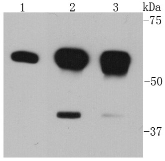 Lane 1: Jurkat Lane 2:A431 Lane 3: PC12