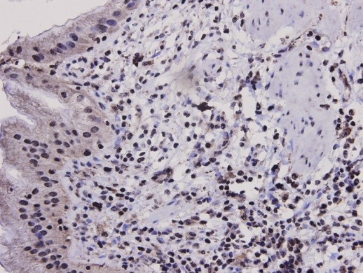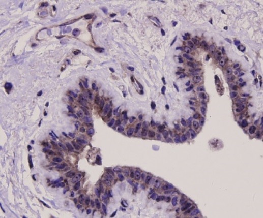 polyclonal antibody. Counter stained with hematoxylin.