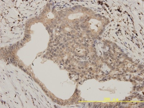 carcinoma tissue using anti-ERK2antibody. Counter stained with hematoxylin.