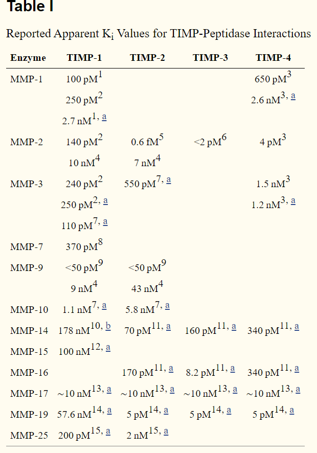前面我们介绍了基质金属蛋白酶MMPs家族成员及功能。提到MMPs调控的几个层面,其中一个就是受内源性金属蛋白酶组织抑制剂TIMPs的调控。今天我们来介绍下TIMPs家族。