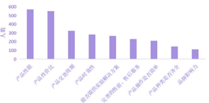 客户选择试剂的标准主要是产品性能、产品性价比、产品交货周期等方面进行选择,调研数据显示80%的用户比较关注产品性能和性价比,40%的用户比较关注产品时效性和交货周期,30%的用户比较注重产品的可操作性和完善的售前、售后服务。也有15%的用户比较在乎品牌影响力。