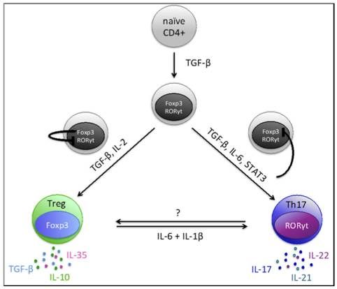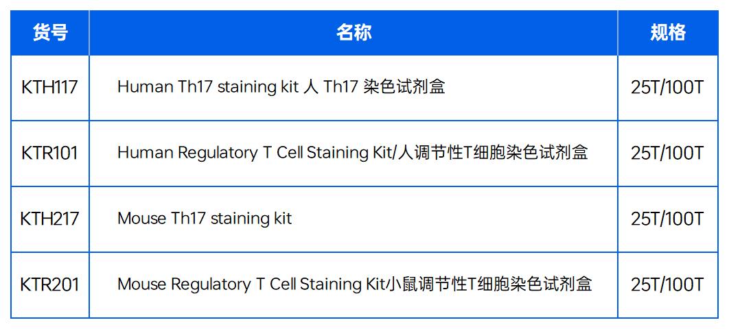 辅助性T淋巴细胞17(T-helper 17,Th17)及调节性T淋巴细胞(regulatory T lymphocyte,Treg)属于CD4+ T细胞,它们在免疫反应中具有重要作用,Treg细胞具有免疫抑制作用,Th17细胞在宿主防御细胞外病原体中发挥促进作用。研究发现免疫促进性的Th17细胞和免疫抑制性的Treg细胞之间存在一种平衡,一旦平衡被破坏,将有可能引起自身免疫性疾病,因此在进行自身免疫性疾病相关研究时,经常会检测Th17细胞和Treg细胞水平,常用流式方法检测。