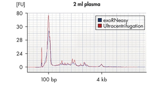 QIAGEN exoRNeasy Serum/Plasma Kit改进了传统的超速离心微泡分离方法,能够在20分钟内快速纯化得到细胞外囊泡。该试剂盒采用Exosome Diagnostics, Inc.公司的技术,通过离心柱和特制缓冲液,从多达4 ml的预过滤血浆中分离exosomes。之后使用QIAGEN miRNeasy技术分离总RNA。整个实验流程,从血清/血浆样本到RNA产物,只需1小时。