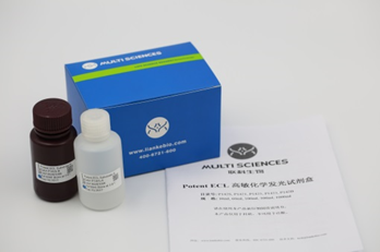 底物化学发光ECL是Western blot最常用的显色方法之一,其原理是辣根过氧化物酶在H2O2的作用下,氧化化学发光物鲁米诺(Lumino)并发光,在化学增强剂存在下光强度可以增大1000倍,通过在照相底片上感光就可以检测辣根过氧化物酶的存在。